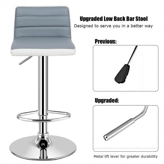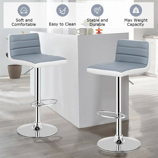 Specification: Color: Gray + white Material: PU leather Overall dimension: 14.5" x 17" x (31" - 39") (W x D x H) Seat size: 14.5" x 13.5" (L x D) Back size: 13" x 8" (L x H) Height from seat to floor: 23" - 31" Net weight: 29 lbs Weight capacity: 260 lbs Package includes: 2 x Chairs
