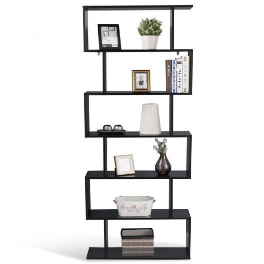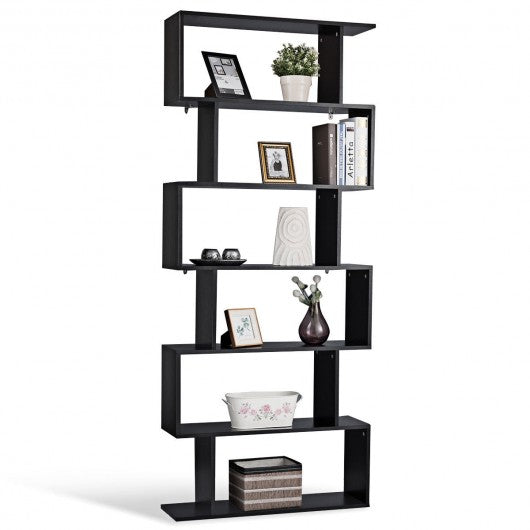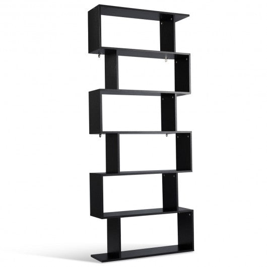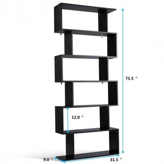 6-Tier S-Shaped Bookcase Z-Shelf Style Storage Bookshelf-Black