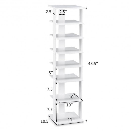 This free standing shoe rack is a perfect solution to store your different shoes together in your room or vestibule.   The black sturdy shoe rack is build with 7 tiers allowing for a practical and efficient way to store your shoes while saving space. Each shelf is constructed from high-quality MDF to provide a sturdy place to organize your shoes. The shoe rack accommodates sneakers dress shoes sandals and slippers whatever of high or flat heels to keep your shoes tidy. And it also can be placed in living room or bedroom to display some books and magazines. The concise and fashion design adds a warm and comfortable touch to your home.   If you are looking for a shoe rack do not hesitate to buy one!   Durable and sturdy construction 7 tiers shoe rack to keep your shoes tidy 2 different heights of shelves allows you classify your different shoes Top shelf can work as a display shelf for books and CDs Perfect for hall bedroom living room Accommodating for 7 pairs of shoes Assembled easily by yourself