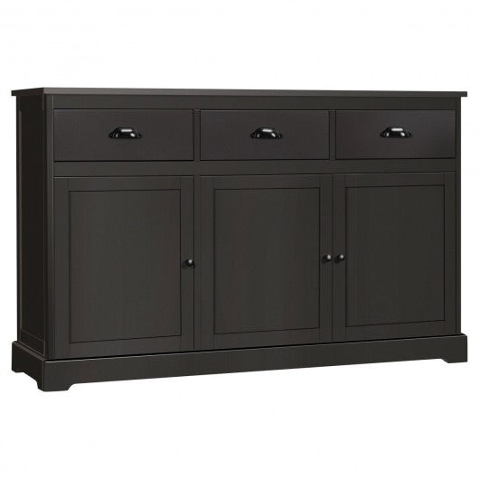 3 Drawers Sideboard Buffet Storage with Adjustable Shelves-Brown
