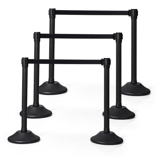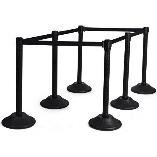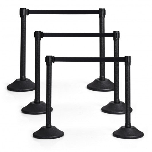6 Pcs Stanchion Post Crowd Control Barriers Queue Pole with Retractable Belt-Black
