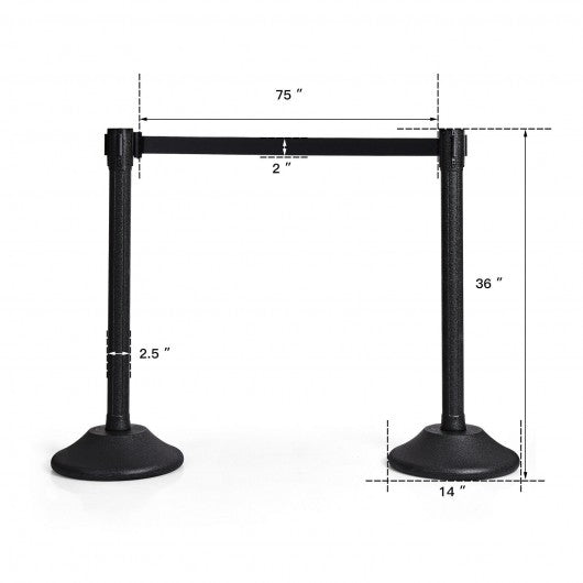 Built to withstand the demands of the toughest events this stanchion can be used both indoors and outdoors which can safely control crowds direct the flow of foot traffic or protect a closed area for construction or cleaning. 4-way adapters on the top of stanchions allow the belt to attach from any direction. 75" retractable belt has a slower retracting speed to ensure safe use. The ability to isolate control and guide the crowd allows this sturdy stanchion set to appear at airports hotels banks museums and many other places. No tools are required for assembly. You can freely combine poles together to meet your different needs. If you are looking for this product don't hesitate to buy it! Scratch-resistant durable and high-quality PE material 75" retractable belt has a slower retracting speed to ensure safe use Easy-to-connect and wear-resistant belt prevents accidental release Create an effective barrier in a crowded area Weatherproof surface without fading or rusting You can fill the base with sand or water to enhance stability without shaking 4-Way connection for convenient control management Skid-resistant rings make it stable and protect the floor Fast assembly and no tools required