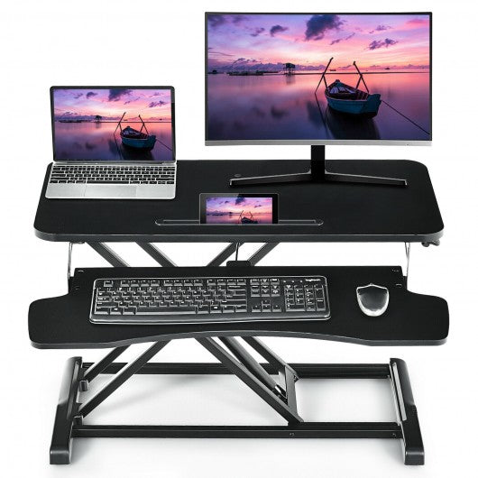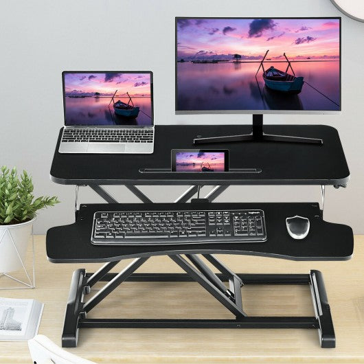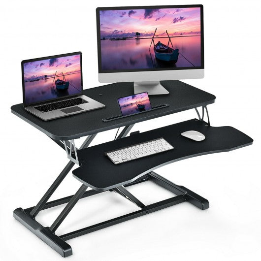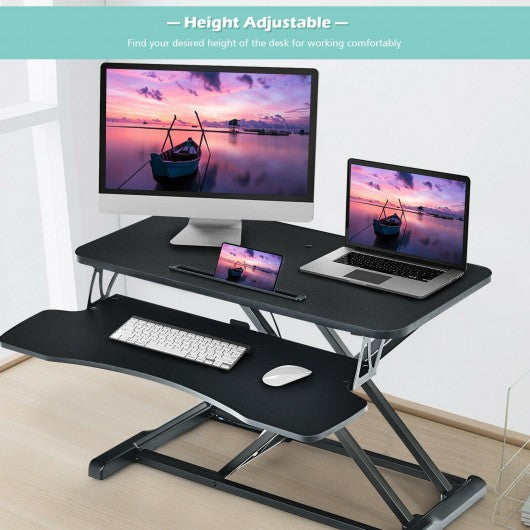 Converter Adjustable Riser Stand Desk with Keyboard Tray-Black