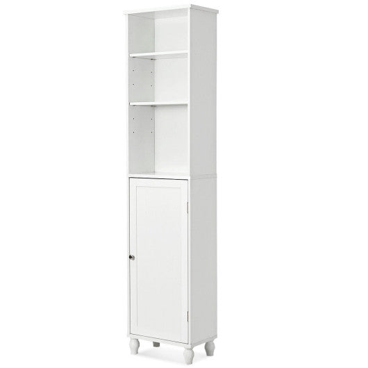 This tower cabinet features a style that can easily blend in with any decoration you have in your home. Thanks to its compact size you can place it in any corner of the room to improve space utilization. Made of quality materials and finished with popular water-based paint this tower cabinet is environmentally friendly and durable. It features 6 shelves in total providing you with ample storage space. Also thanks to the help of adjustment holes at two height positions all the shelves can be adjusted in height in two positions. There are four solid medieval-style raised pinewood legs not only for ensuring the stability and safety of the cabinet but also for helping you keep your toiletries dry. Order one now and finally have your bathroom organized as you want! 3 semi-enclosed shelves and 3 shelves that come with a cupboard door providing ample storage space Four of the five shelf partitions are removable Adjustment holes at two height positions Practical storage for small spaces and to enhance the utilization of space Light-weight design for easy moving Raised pinewood legs for enhanced stability and safety and for protecting your items from getting wet Made of P2 grade MDF pinewood and finished with popular water-based paint Easy to assemble and keep clean