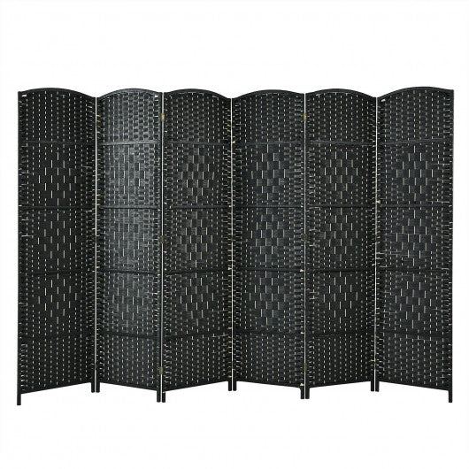 6.5Ft 6-Panel Weave Folding Fiber Room Divider Screen-Black