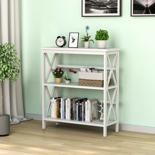 3-Tier Bookshelf Wooden Open Storage Bookcase for Home Office-White