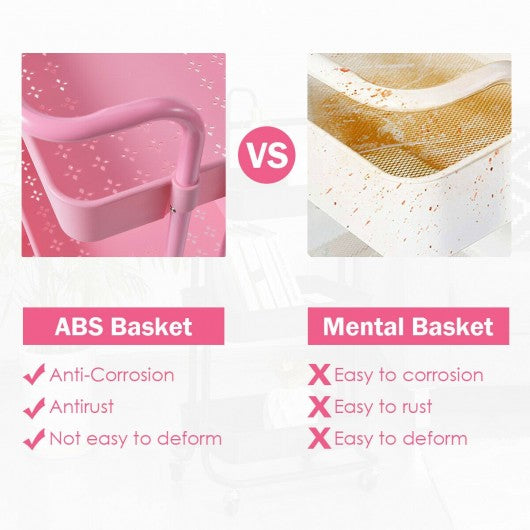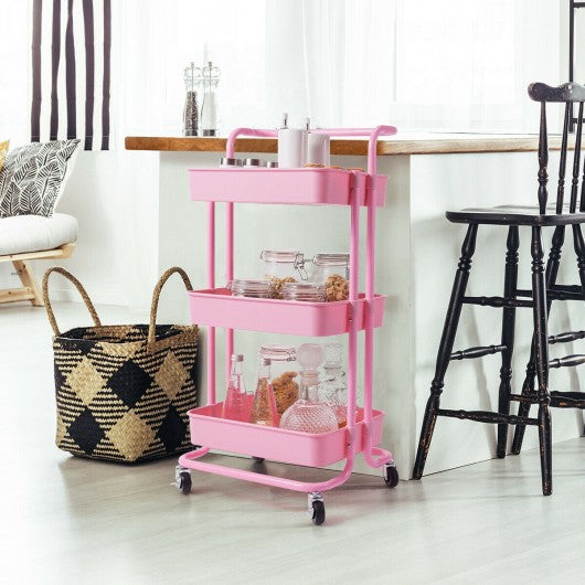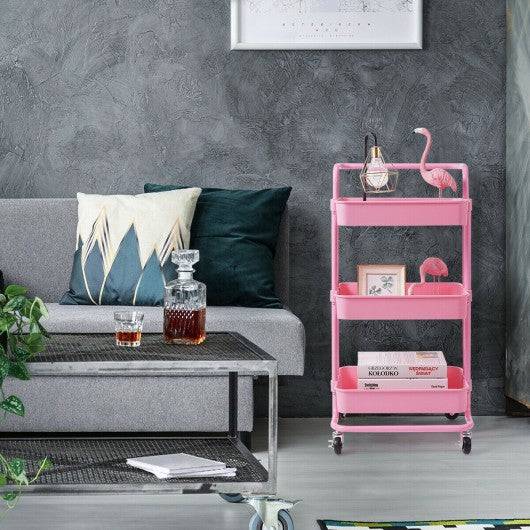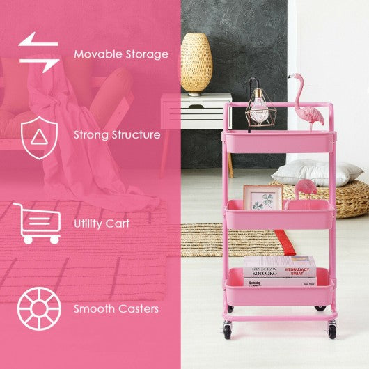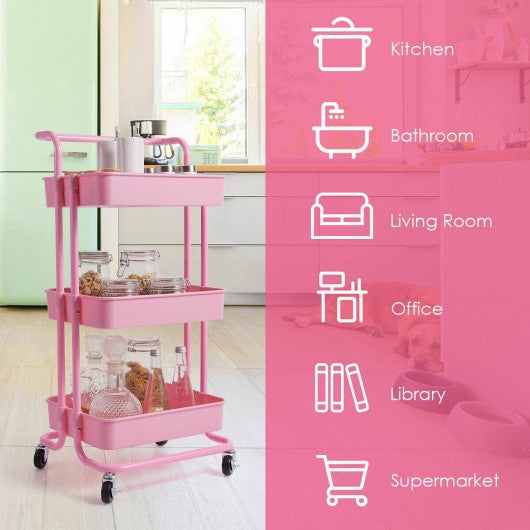 3-Tier Utility Cart Storage Rolling Cart with Casters-Pink