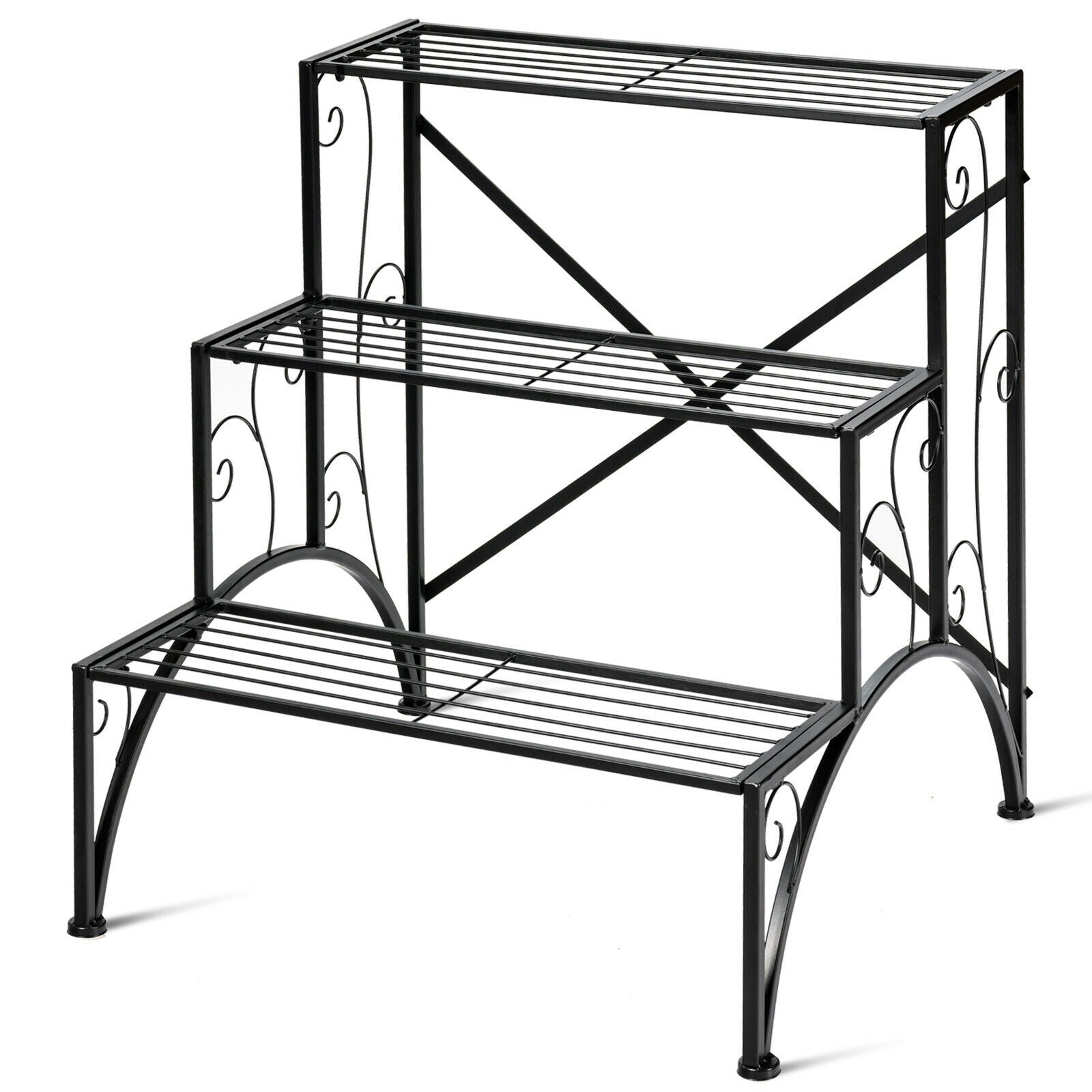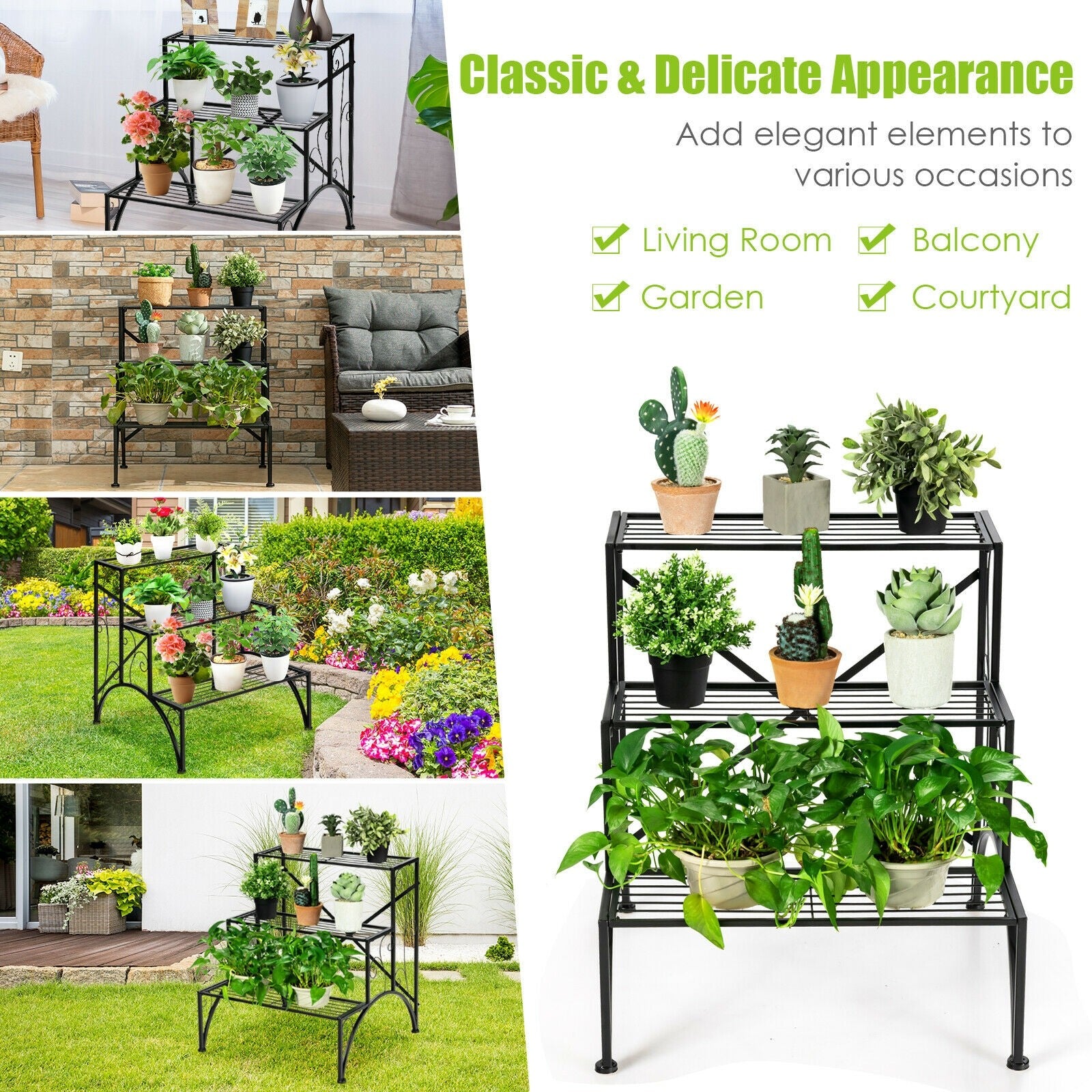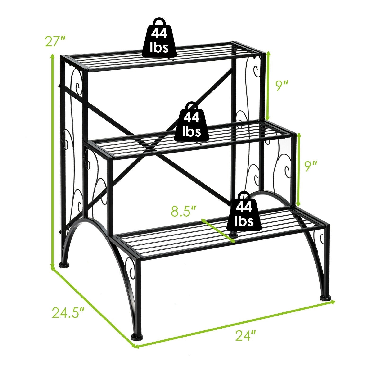 3-Tier Metal Plant Rack Garden Shelf in Stair Style