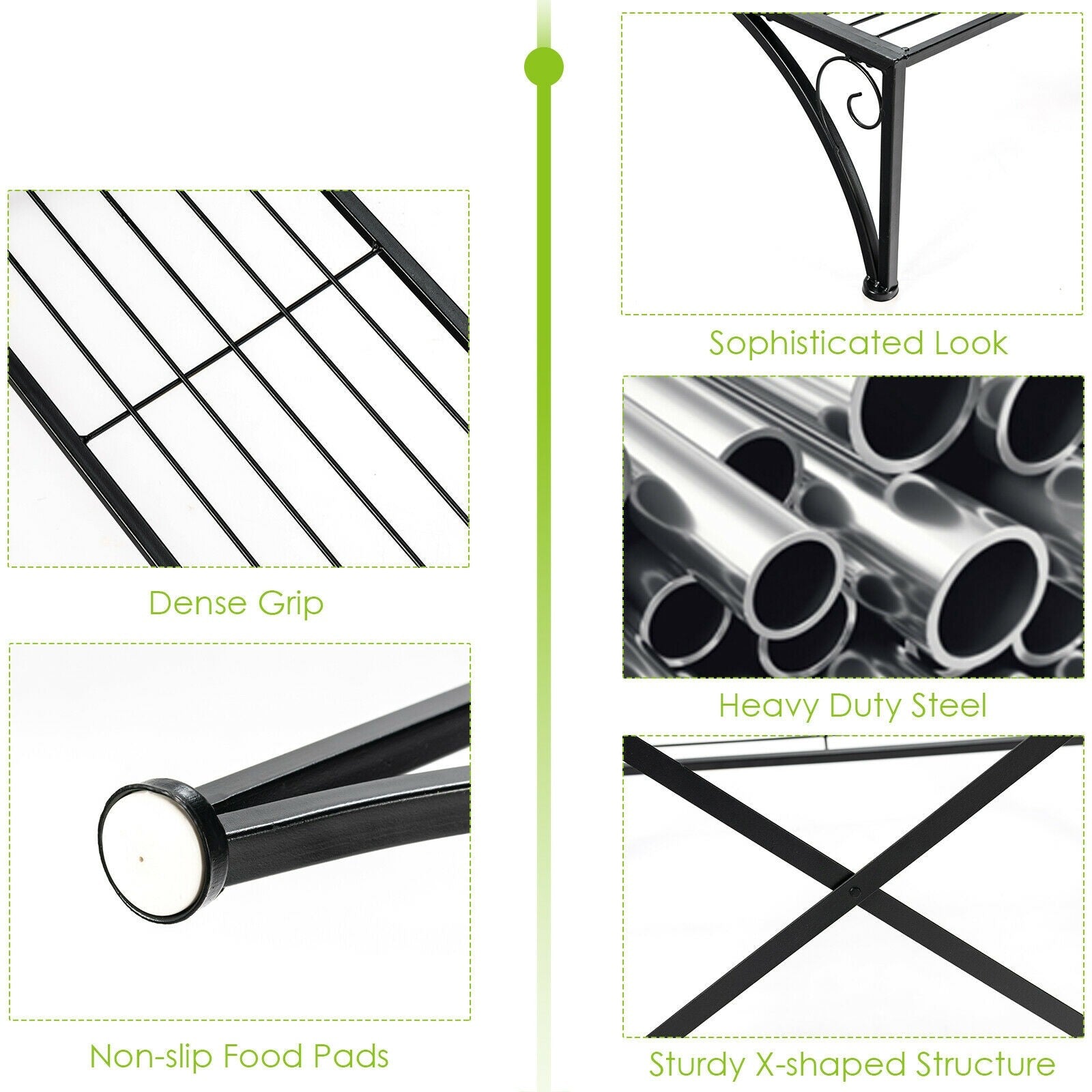 Specification: Color: Black Material: Iron Dimensions: 24''x 24.5'' x 27'' (L x W x H) Net weight: 11lbs Weight capacity: 44 lbs Package includes 1 x Iron flower pot stand 1 x Instruction