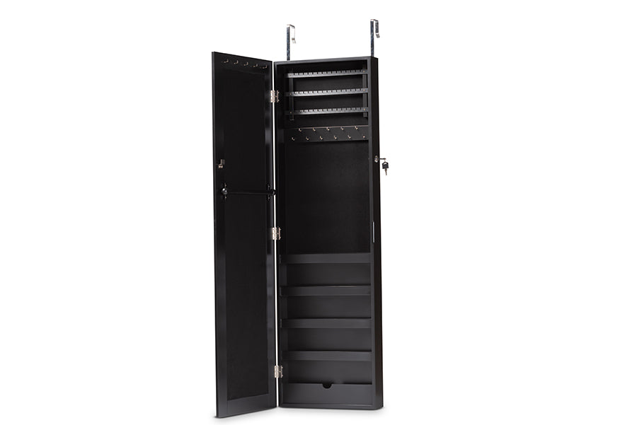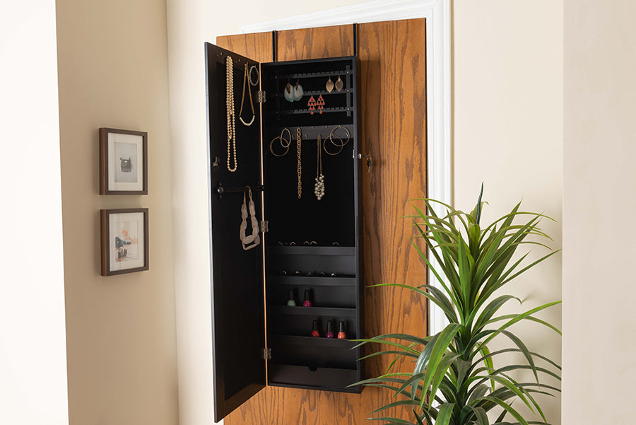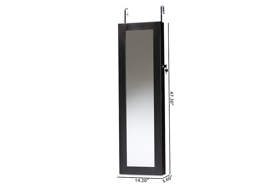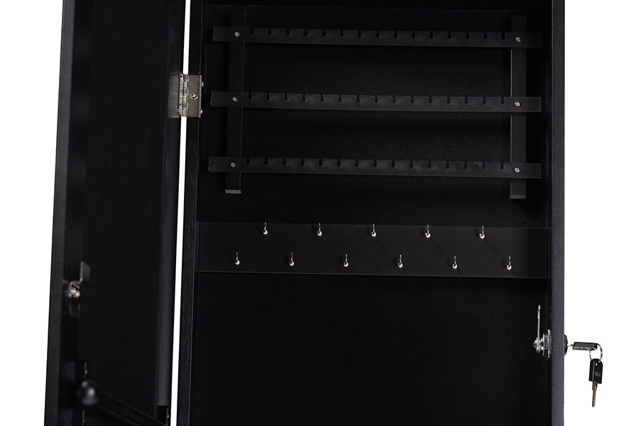 Baxton Studio Richelle Modern and Contemporary Black Finished Wood Hanging Jewelry Armoire with Mirror