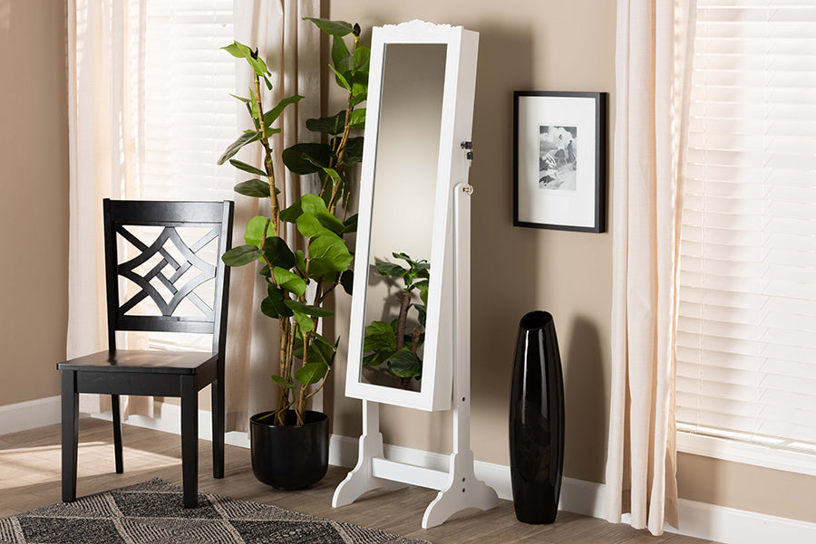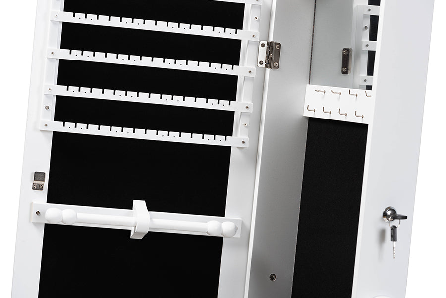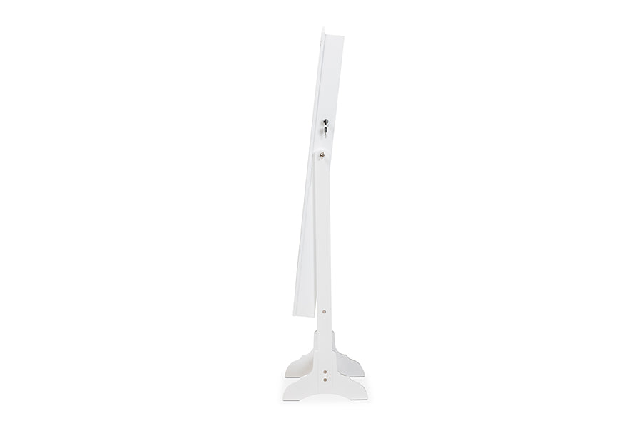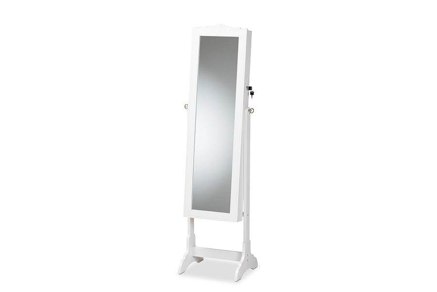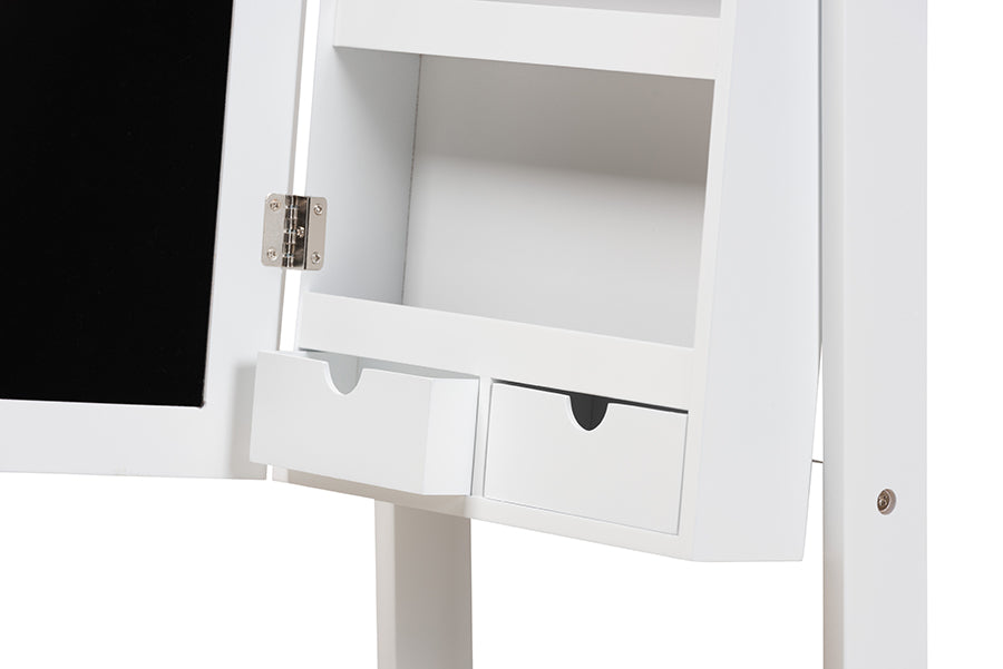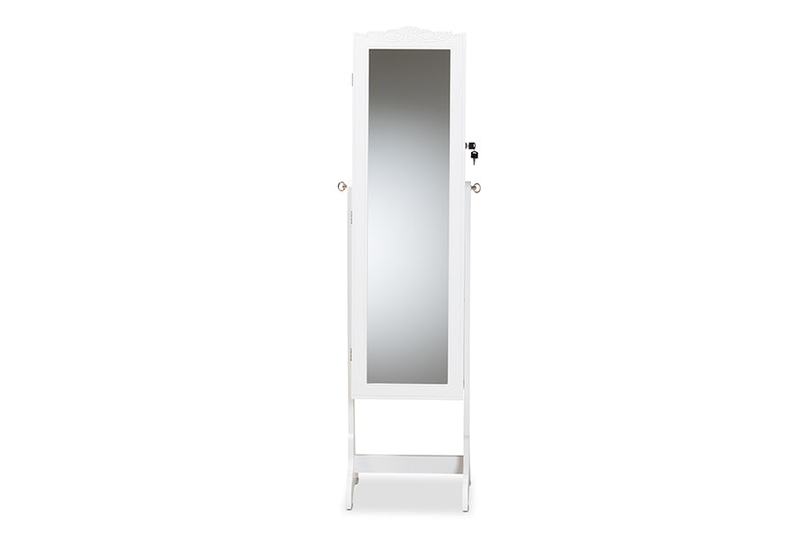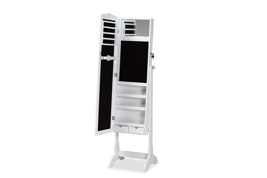 Baxton Studio Madigan Modern and Contemporary White Finished Wood Jewelry Armoire with Mirror