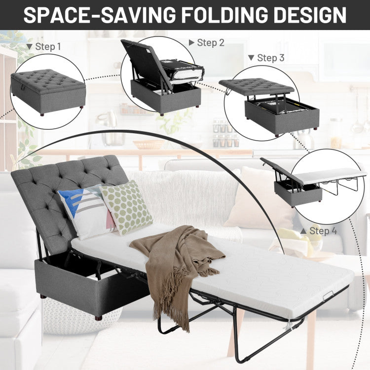 Folding Ottoman Sleeper Bed with Mattress for Guest Bed and Office Nap-Gray