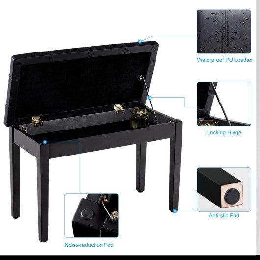 Solid Wood PU Leather Piano Double Duet Keyboard Bench-Black