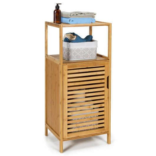 Bamboo Bathroom Storage Floor Cabinet with Door and Shelf Corner Cabinet