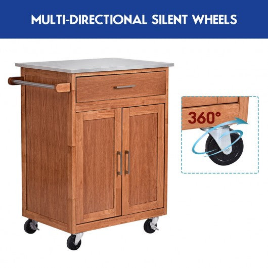 Wooden Kitchen Rolling Storage Cabinet with Stainless Steel Top