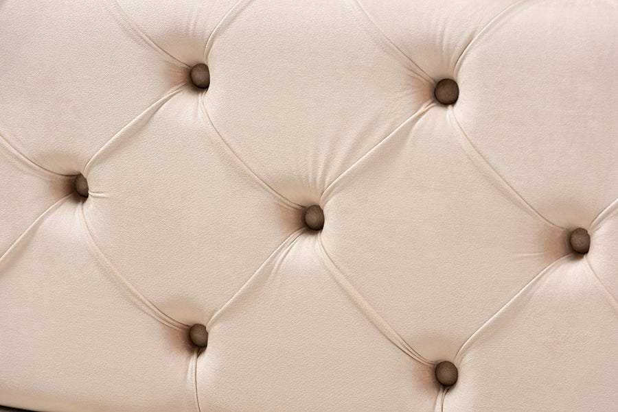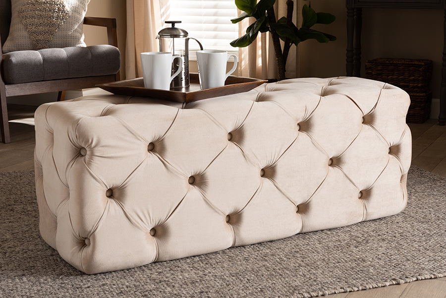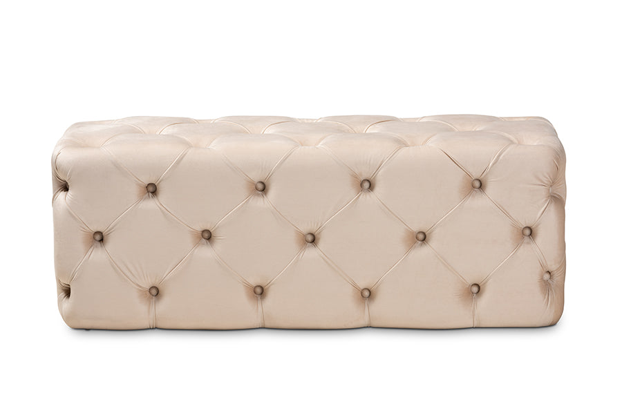 Baxton Studio Jasmine Modern Contemporary Glam and Luxe Beige Velvet Fabric Upholstered Button Tufted Bench Ottoman