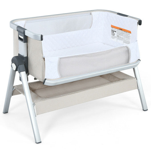 Baby Bassinet Bedside Sleeper with Storage Basket and Wheel for Newborn-Beige