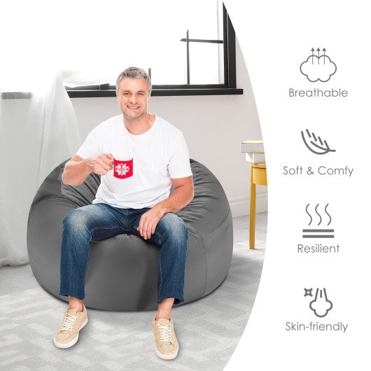 3 Feet Bean Bag Chair with Microfiber Cover and Independent Sponge Filling-Gray
