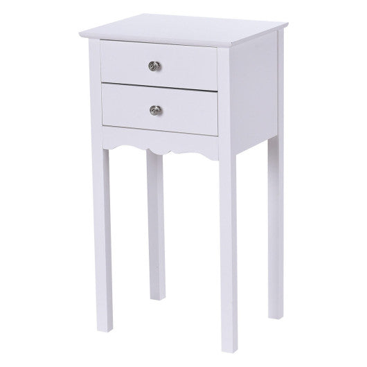 Side Table End Accent Table w/ 2 Drawers-White