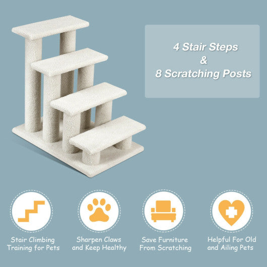 4-Step Pet Stairs Carpeted Ladder Ramp Scratching Post Cat Tree Climber