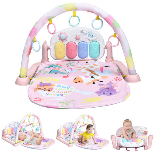 3 in 1 Fitness Music and Lights Baby Gym Play Mat-Pink