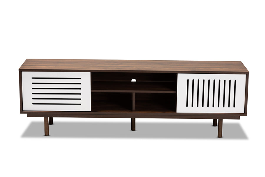 Baxton Studio Meike Mid-Century Modern Two-Tone Walnut Brown and White Finished Wood TV Stand