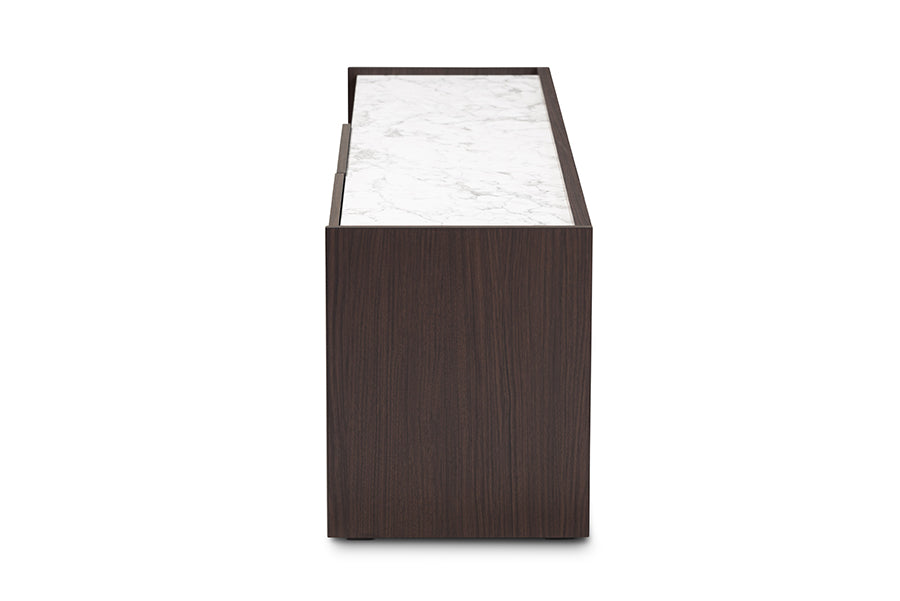 Baxton Studio Walker Modern and Contemporary Dark Brown and Gold Finished Wood TV Stand with Faux Marble Top
