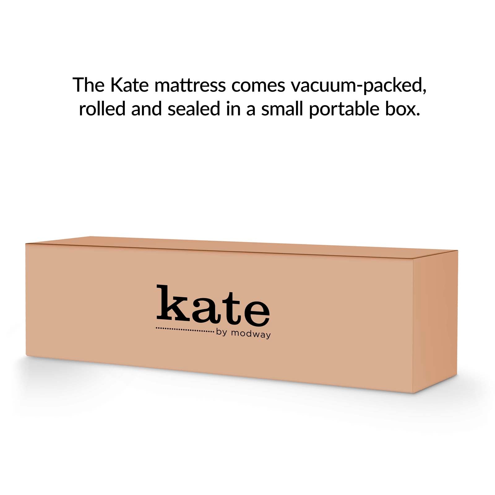 Enjoy sound sleep with the Kate 6" Innerspring Mattress. The go-to choice for reliability, innerspring provides consistent support without the sink and sag of foam and air mattresses. Featuring a gray fabric fire-resistant barrier that has been tested to ensure it meets safety standards, Kate also comes with a padded quilt fabric top and felt liners both above and below the springs for a smooth and even feel. Kate ships conveniently compressed and rolled in a portable box for easy delivery and fun-to-watch setup. Experience the firm yet cushioning support night after night with the Kate Innerspring Mattress. Set Includes: One - Kate 6" Twin Mattress