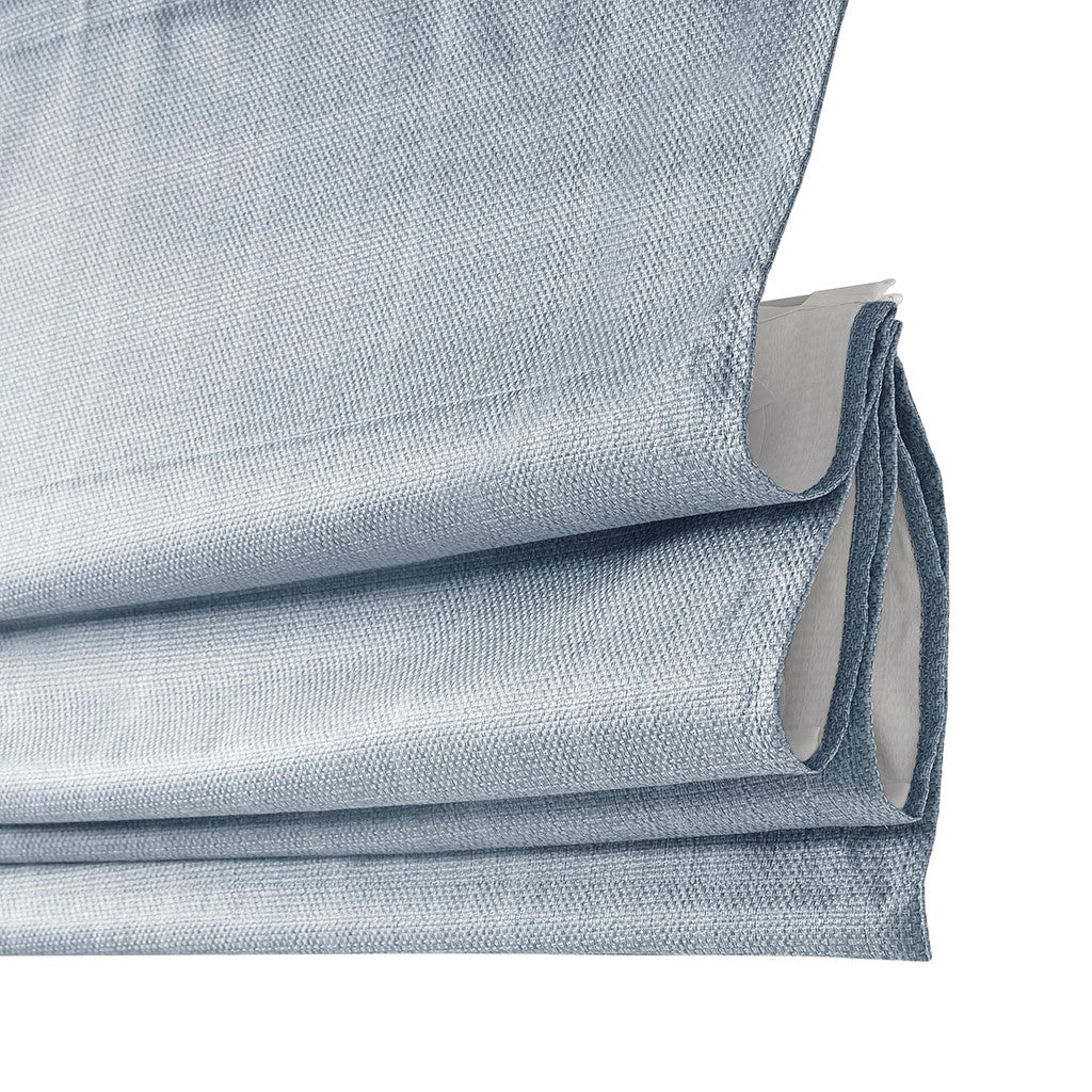 The Madison Park Galen Basket Weave Room Darkening Roman Shade offers a simple and convenient update to your home decor. This blue roman shade features a basket weave texture base fabric that creates a natural look and feel. A thermal foambacking on the reverse provides energy efficiency and a room darkening effect, for enhanced privacy. The cordless retraction mechanism makes it easy to open and close the window shade throughout the day, while the detachable fabric face allows for easier assembly and cleaning by lightly shaking or dusting. Though detachable from the hook and loop fastener, the top face fabric is NOT fully removable. Ready to install right out of the packaging, this roman shade can be hung inside or above the window pane allowing you to find the perfect fit for your home decor. Shade measures 64-inches in length and comes in 5 width options to suit multiple standard window sizes; each roman shade is sold as a single and comes with a printed instructional guide as well as an instructional video available on site. Assembly is required.
