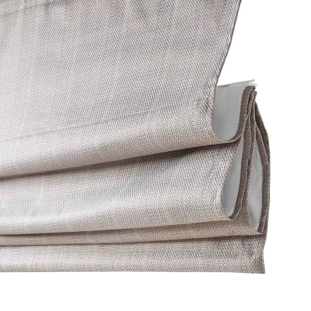 The Madison Park Galen Basket Weave Room Darkening Roman Shade offers a simple and convenient update to your home decor. This taupe roman shade features a basket weave texture base fabric that creates a natural look and feel. A thermal foambacking on the reverse provides energy efficiency and a room darkening effect, for enhanced privacy. The cordless retraction mechanism makes it easy to open and close the window shade throughout the day, while the detachable fabric face allows for easier assembly and cleaning by lightly shaking or dusting. Though detachable from the hook and loop fastener, the top face fabric is NOT fully removable. Ready to install right out of the packaging, this roman shade can be hung inside or above the window pane allowing you to find the perfect fit for your home decor. Shade measures 64-inches in length and comes in 5 width options to suit multiple standard window sizes; each roman shade is sold as a single and comes with a printed instructional guide as well as an instructional video available on site. Assembly is required.