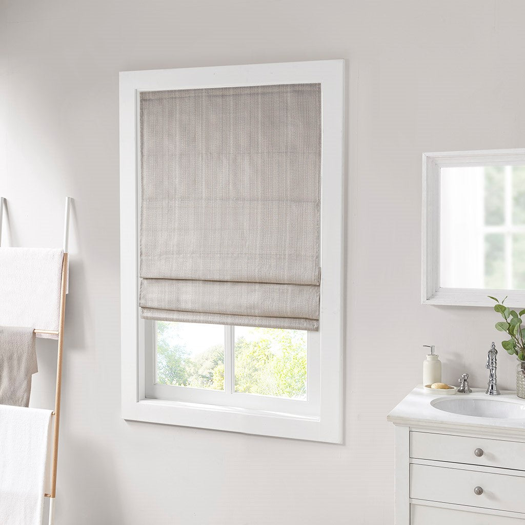 The Madison Park Galen Basket Weave Room Darkening Roman Shade offers a simple and convenient update to your home decor. This taupe roman shade features a basket weave texture base fabric that creates a natural look and feel. A thermal foambacking on the reverse provides energy efficiency and a room darkening effect, for enhanced privacy. The cordless retraction mechanism makes it easy to open and close the window shade throughout the day, while the detachable fabric face allows for easier assembly and cleaning by lightly shaking or dusting. Though detachable from the hook and loop fastener, the top face fabric is NOT fully removable. Ready to install right out of the packaging, this roman shade can be hung inside or above the window pane allowing you to find the perfect fit for your home decor. Shade measures 64-inches in length and comes in 5 width options to suit multiple standard window sizes; each roman shade is sold as a single and comes with a printed instructional guide as well as an instructional video available on site. Assembly is required.
