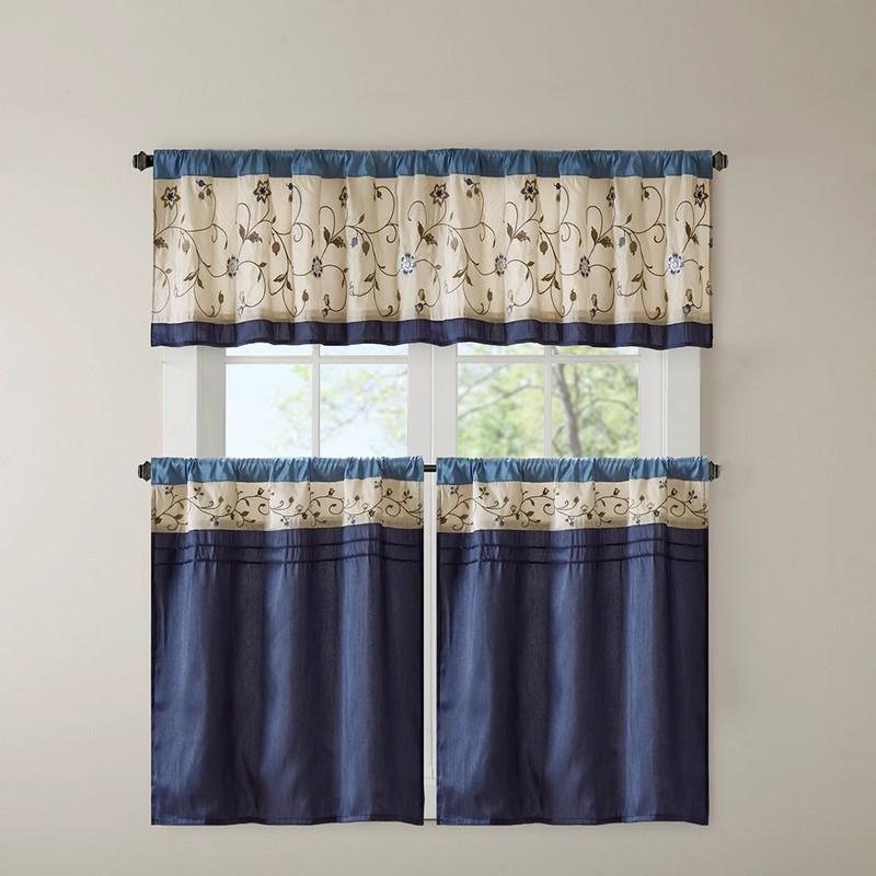 Add simple elegance to any room with the Serene window valance. The deep navy color combined with soft ivory and chocolate brown creates the perfect classic look. The valance features delicate floral embroidery and lining to help filter light and provide some room darkening features. Valance is made with 3" rod pocket and fits up to 1.25" diameter rod.
