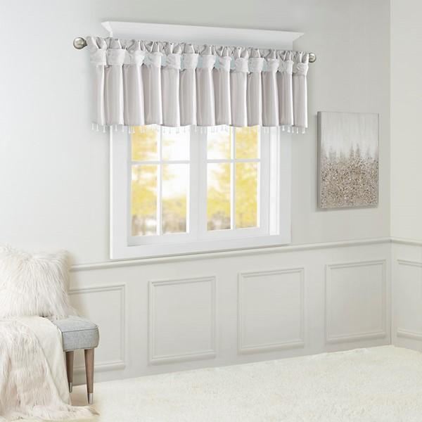 Madison Park Emilia Lightweight Faux Silk Valance With Beads MP41-6330 By Olliix