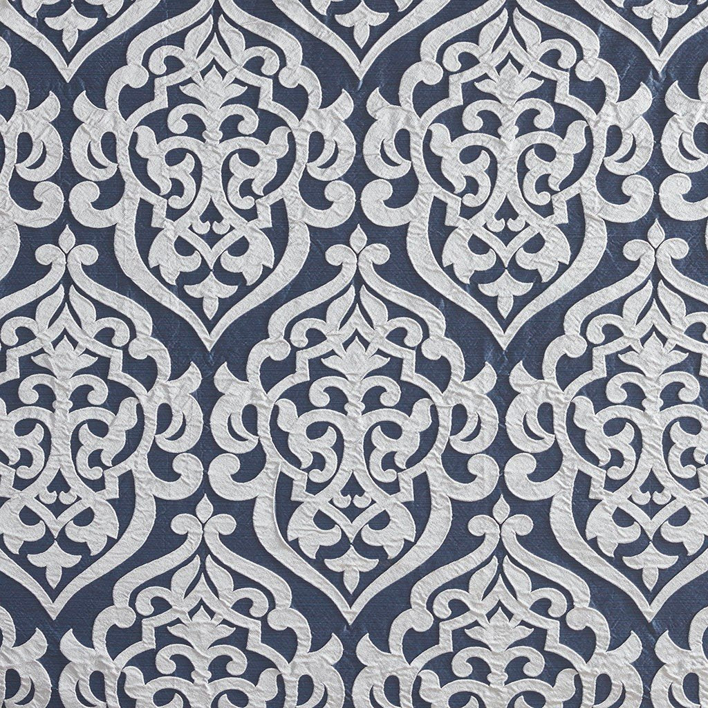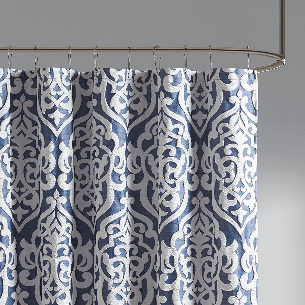 Madison Park Odette 100% Polyester Jacquard Shower Curtain- Navy MP70-6876 By Olliix