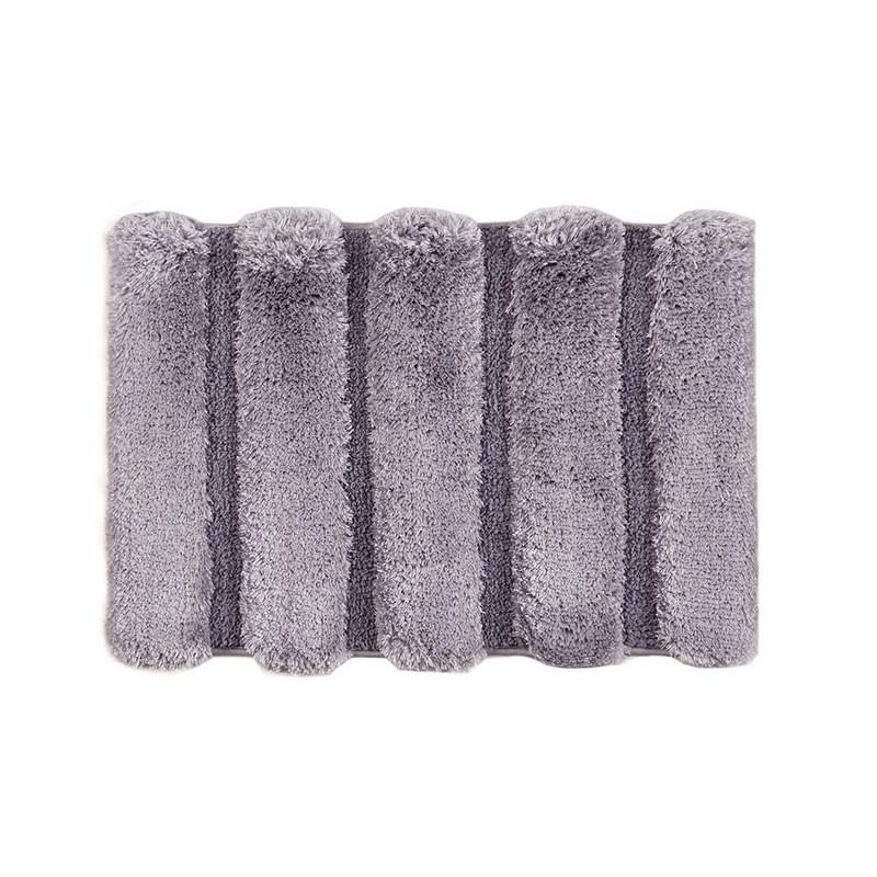 Transform your bathroom with the irresistibly soft Madison Park Tufted Pearl Channel Rug. The 1500GSM tufted rug features a high-low stripe design, in a grey color, made from macro spun fibers to create a charmingly casual look with a soft hand feel. Long-lasting and durable, this bath rug is stain resistant and machine washable to make cleaning a breeze.