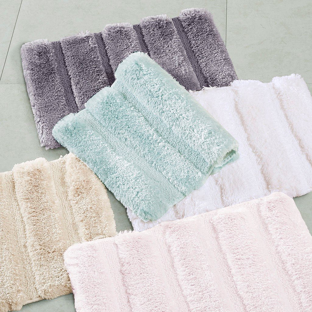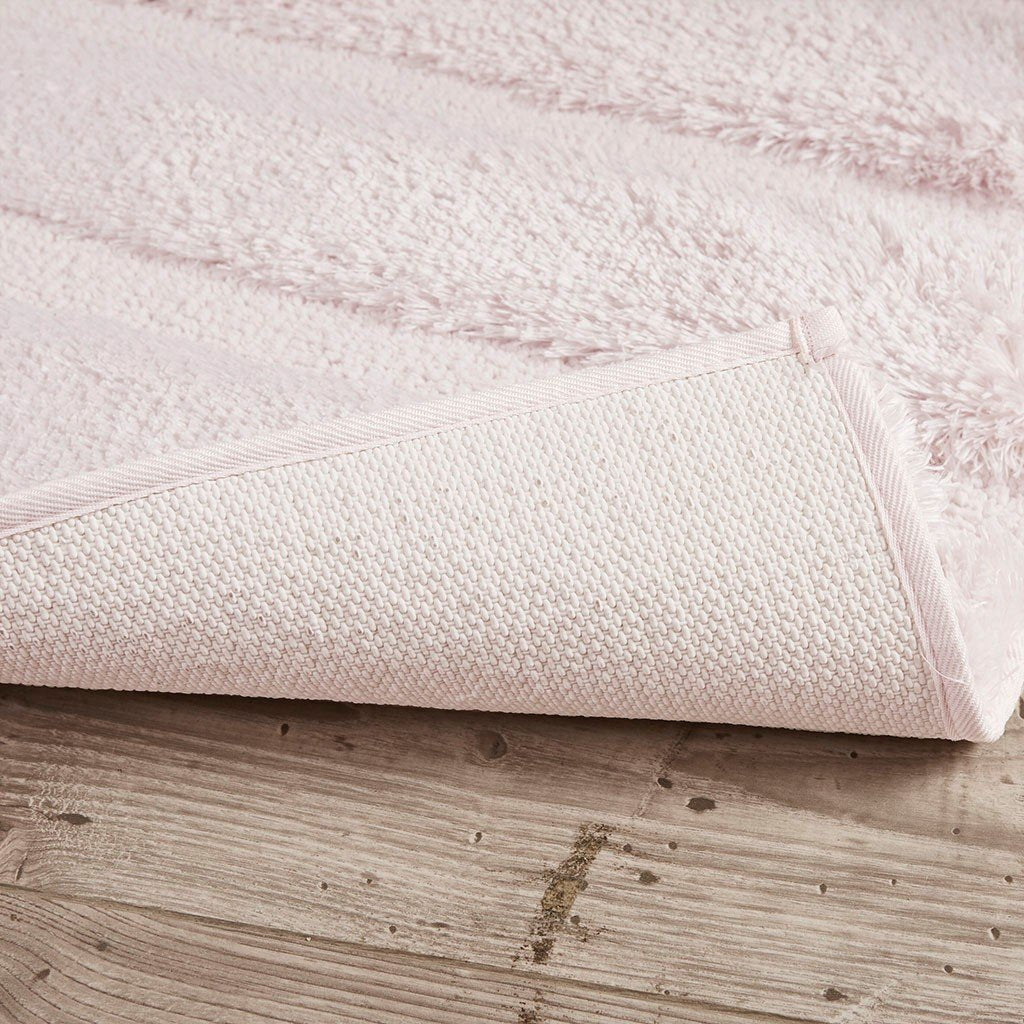 Transform your bathroom with the irresistibly soft Madison Park Tufted Pearl Channel Rug. The 1500GSM tufted rug features a high-low stripe design, in a blush color, made from macro spun fibers to create a charmingly casual look with a soft hand feel. Long-lasting and durable, this bath rug is stain resistant and machine washable to make cleaning a breeze.