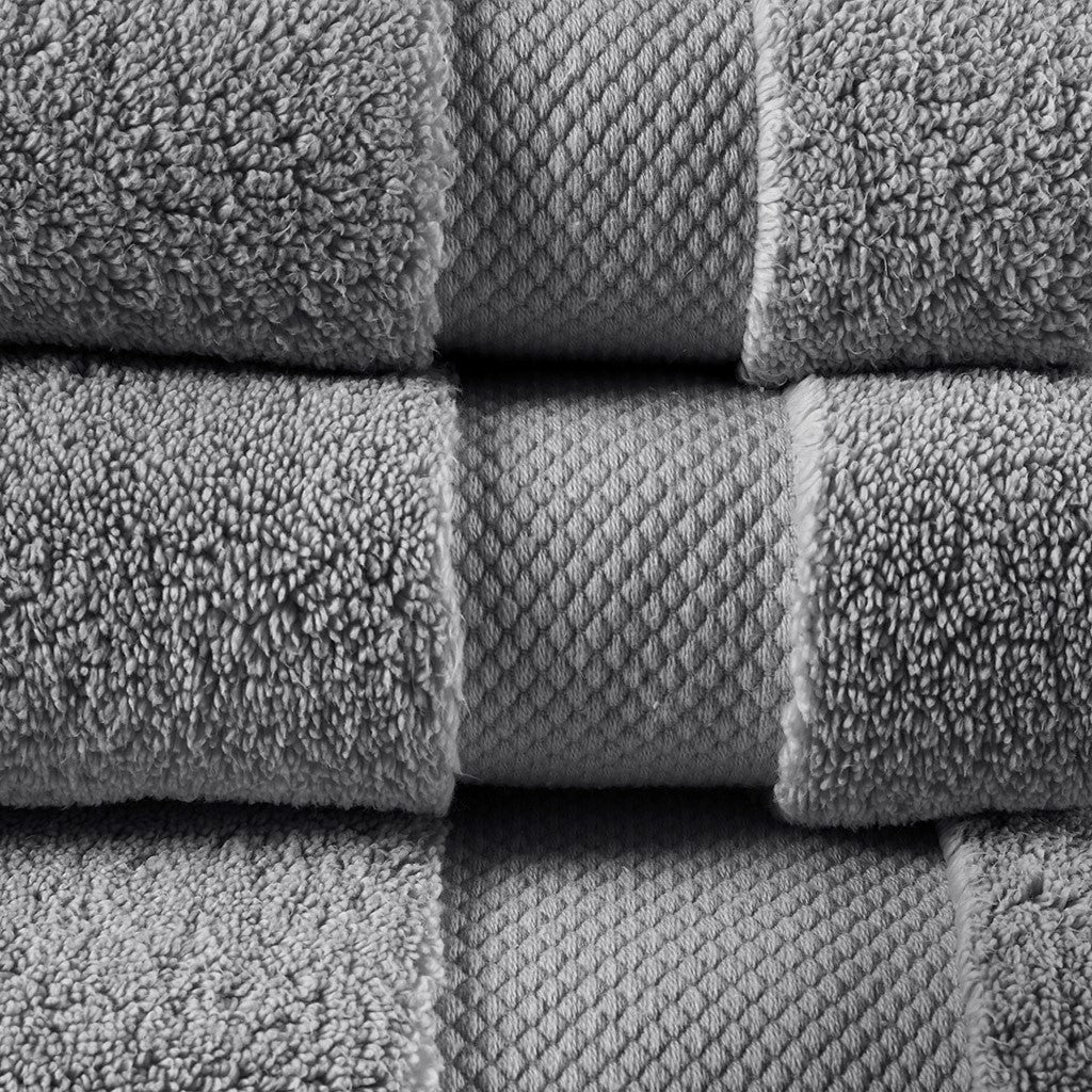 Our Madison Park Signature Splendor 1000 GSM 100% Cotton 6 Piece Towel Set provides a true luxurious addition to your bathroom essentials. This 100% cotton towel set features oversized bath towels with 1000gsm construction and 900gsm hand/wash towels that ensure a premium quality and heavy weight, for superior comfort. The long staple, zero twist cotton construction creates an incredibly soft plush feel, while adding more density and absorbency to each towel. These cotton towels are also OEKO-TEX certified, meaning they do not contain any harmful substances or chemicals, ensuring quality comfort and wellness. Machine washable for easy care, this cotton bath towel set comes in soft stain resistant colors and brings a true spa luxury touch to any bathroom. Set includes: 2 oversized 30x58" bath towels, 2 large 16x30" hand towels, and 2 standard 13x13 wash towels.
