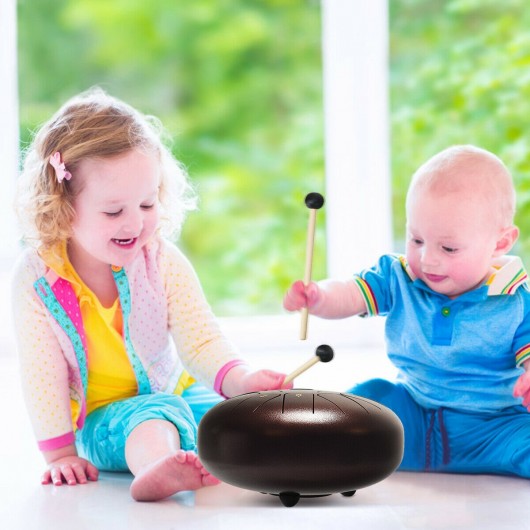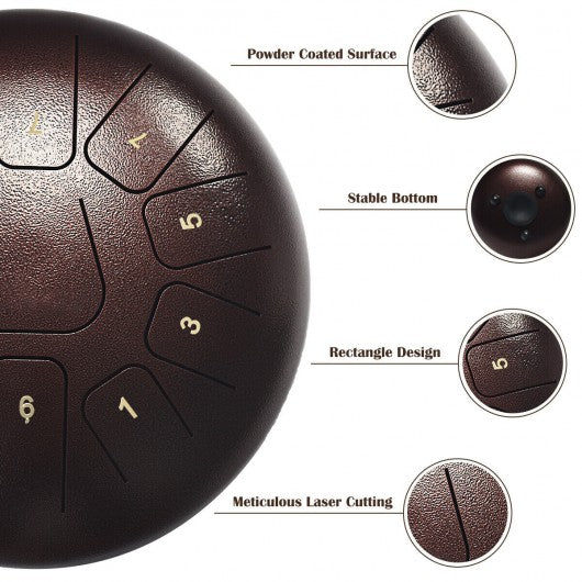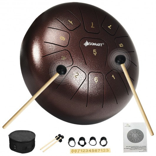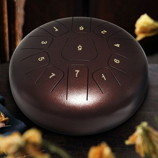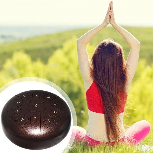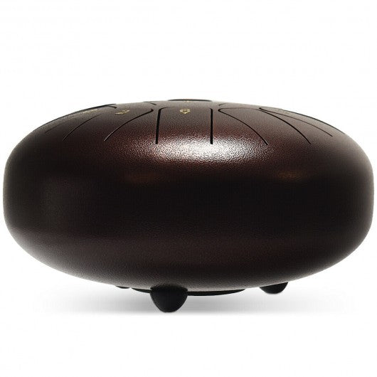10" High Carbon 11 Notes Steel Tongue Drum with Drum Hammer-Coffee