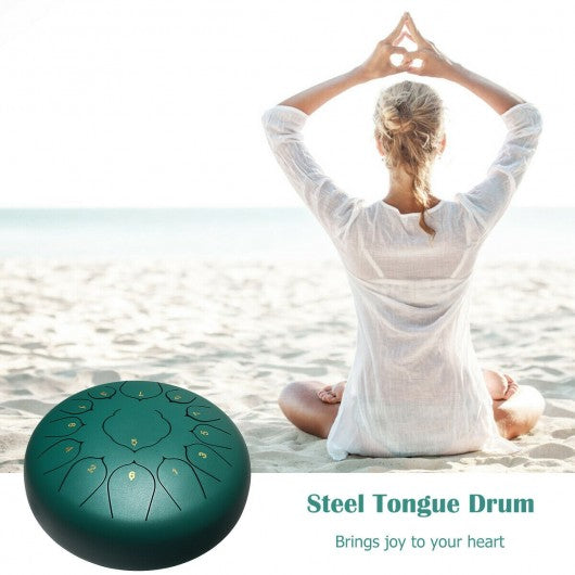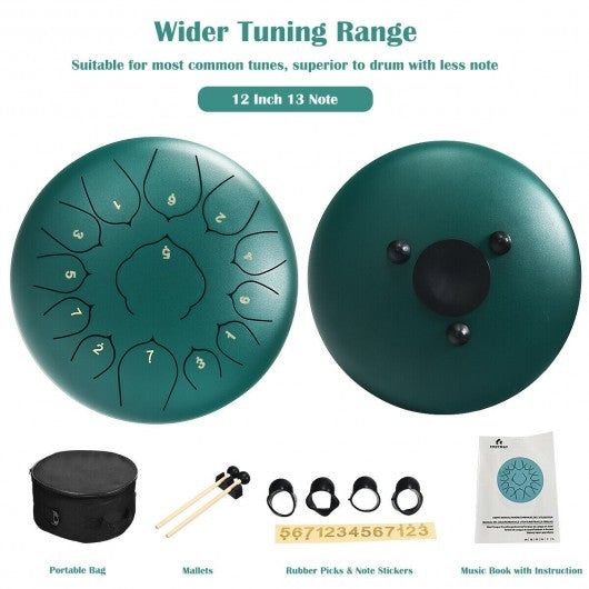 Steel Tongue Handpan Drum 13 Notes 12"-Green