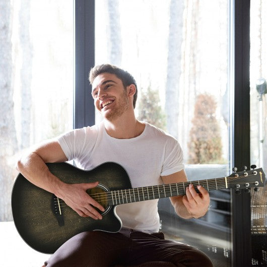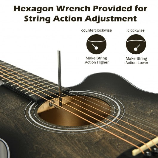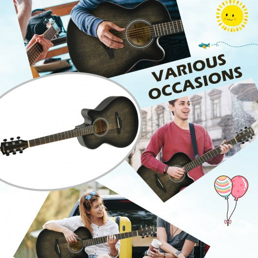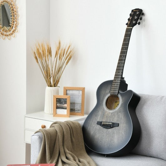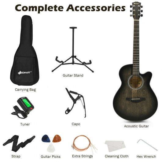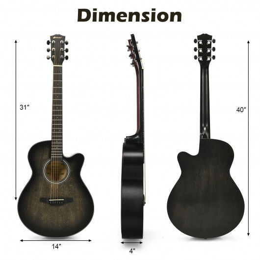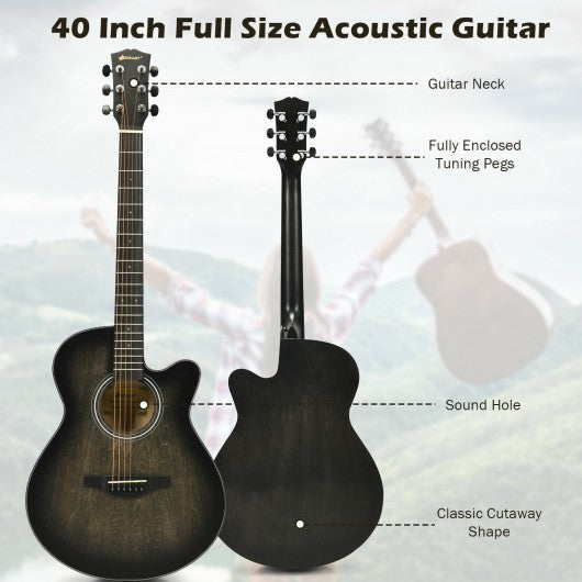 40" Full Size Cutaway Acoustic Guitar Starter Guitarra Bundle Kit -Black