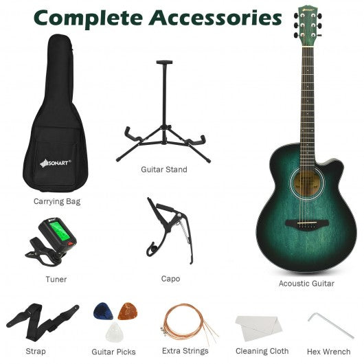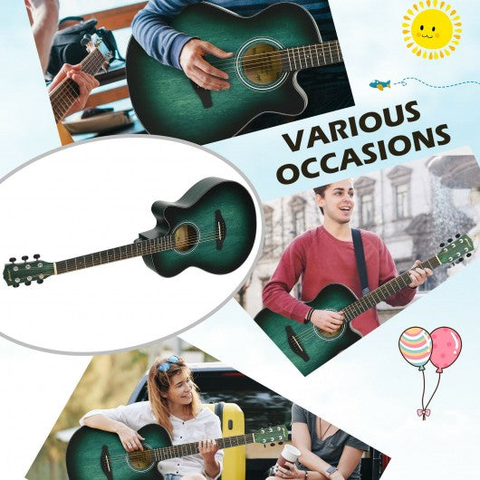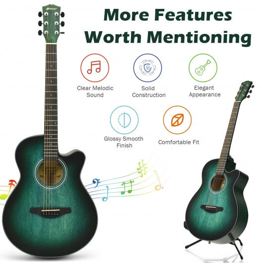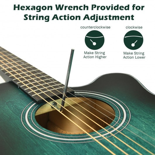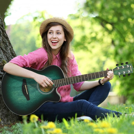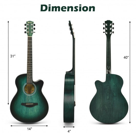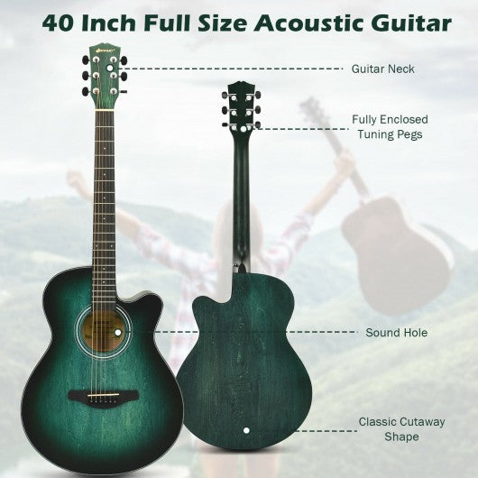 40" Full Size Cutaway Acoustic Guitar Starter Guitarra Bundle Kit -Green