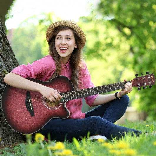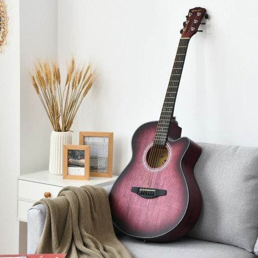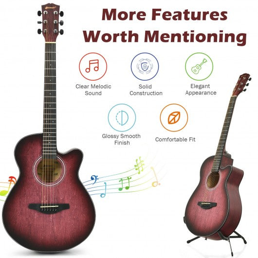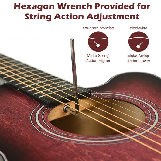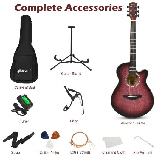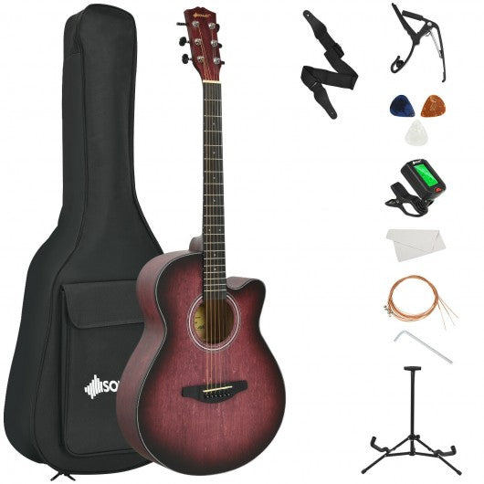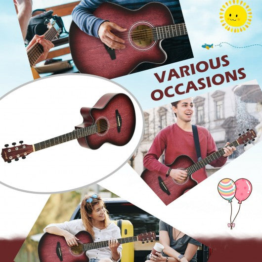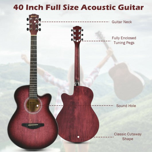 40" Full Size Cutaway Acoustic Guitar Starter Guitarra Bundle Kit -Red