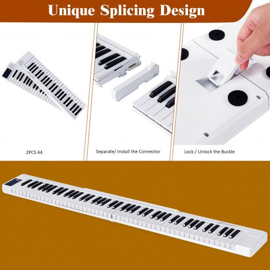 2 in 1 Attachable Digital Piano Keyboard 88/44 Touch sensitive Key w/ MIDI-White