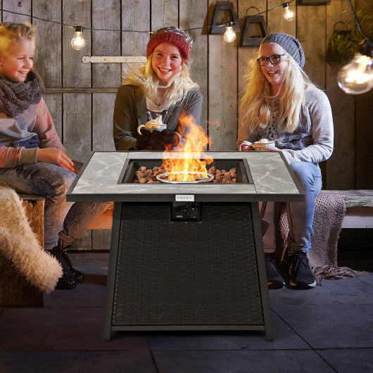 35 Inch Propane Gas Fire Pit Table Wicker Rattan with Lava Rocks PVC Cover-Black