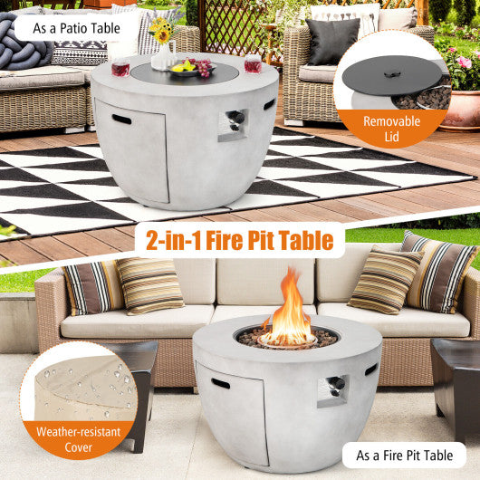 36 Inch Round Concrete Propane Fire Pit Table with Lava Rocks PVC Cover 50000 BTU