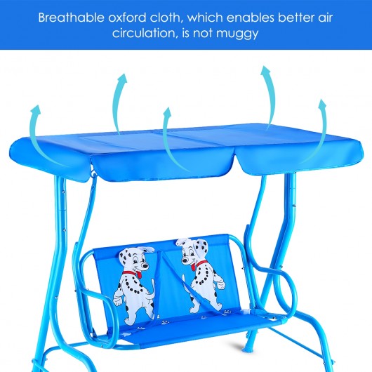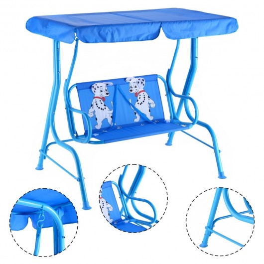 The patio swing is a perfect purchase for your children. Metal construction gives it more stability and durability. The puppy theme gives it a great look that is more attractive to kids. They are sure to instantly fall in love! The adjustable canopy protects kids from strong sunlight or rain while outdoors. Adding more to the protection seat belts are installed and the whole swing is free of sharp edges to ensure safety. The feet are a non-slip design to keep the swing stable and prevent any damages to the floor as well. Finally the spacious dual seat design offers plenty of room for two kids at a time and can bear a load of up to 176lbs. We are certain that it�s the best addition to your kids� childhood. The shop is calling! Metal construction durable and sturdy Removable and angle adjustable canopy to meet your different needs Puppy pattern style attracts children easily Seat belts ensure the safety of children Non-slip feet keep the stability and protect your floor Suitable for child with age from 3 to 5 years old Perfect for outdoor or indoor use 2 person patio seat Easy to assemble