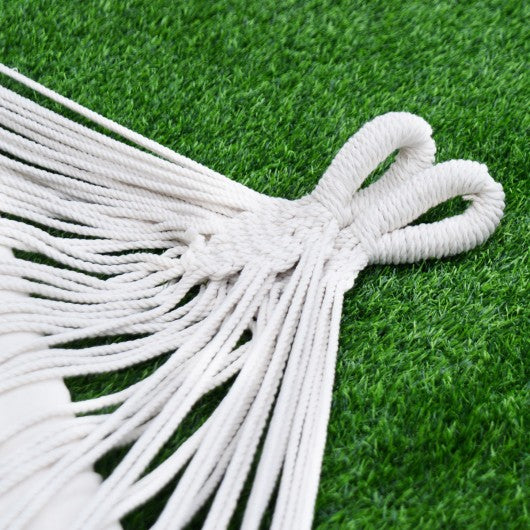 With this hammock swing we strive to relax the world You’ll see how the hammocks will be the favorite spot in your house! This hammock comes with stand and you no longer have to struggle to find two trees for your hammock. It’s perfect to be used indoors and the premium material and weatherproof oil finish allows it to be used outdoors as well. The stand is made of hardwood and features a strong bearing capacity targeting a wider user. The hammock is made of polyester cotton providing you comfortable rest experience and the unknotted ends with spreader bars ensure it to accommodate two people and so that you can share your relaxing experience with a loved one. Whether dangling your feet over the edge or lying lengthwise the hammock provides welcome space for watching the world go by on your own or with a friend. If you are desired for a getaway from life’s all stress this beautiful hammock is worth your while. Shop our products today! Solid Russian larch wood hammock stand Heavy duty arc frame with strong bearing capacity of 330lbs Durable and comfy polyester cotton hammock Spreader bars at both ends of hammock to keep it from knotting Polyester ropes shaped like fish tails tied to the stand to ensure that the force is uniform and effectively prevent rollover Waterproof and mothproof oil finish protect it from moth rot and mildew Lightweight and portable for easy moving and storage Perfect for backyard fun or condo living Simple style that goes well with any decor