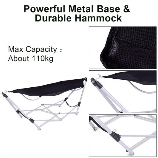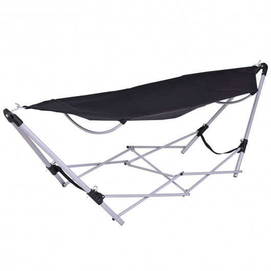 This portable folding hammock is perfect for companion for camping trips relaxing poolside hanging out in the backyard or even at home. Made of solid steel frame this hammock stand is sturdy and durable. Folds conveniently to fit into an easy carry backpack and assembles quickly in just three easy steps and space-saving when not use. It is comfortable and easy to use which is great for all kinds of outdoor activities. It is ideal for indoor and outdoor use. Moreover this hammock will bring you an amazing leisure time. Do not hesitate to get the comfortable relaxing hammock which you've always wanted without all the fuss. High quality and brand new Foldable hammock won't take up too much space Compact lightweight and portable for easy carrying and storage Ideal for indoor and outdoor use Comfortable and easy to use great for all kinds of outdoor activities Bring you an amazing leisure time in the open air Consist of hammock and stand With a carry bag for convenient storage and transporting