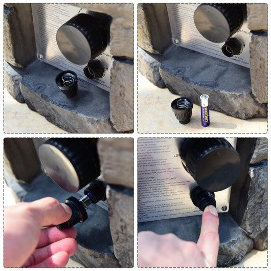 This beautiful and durable fire pit table can fully meet your needs. Made of heavy-duty stainless-steel burner and natural stonework it is rustproof and weather-resistant for longevity.   This fire pit table also provides decorative lava rocks to fill around the burner. More the waterproof cover provided is convenient for outdoor storage when not in use. Most importantly you don't need to worry about generating any ash or smoke to harm your health or the environment. The fire pit table uses clean propane gas to support green burning. With the help of a rotary knob you can easily adjust the flame intensity according to your different needs. The natural simulated rock appearance can add a unique charm to your outside space. It is a good choice to talk with family and friends around this round fire pit table in the backyard balcony garden or other places.   If you are looking for such a product. Don't hesitate to buy it!   Made of stainless-steel burner and sturdy stonework Provides up to 40 000 BTU heat output to meet the demand Decorative lava rocks and a battery included Dustproof and waterproof PVC cover for better storage Easy to operate ignition device and adjustable rotary knob Two built-in handles for easy movement Ideal for your backyard garden balcony and more The appearance of the simulated stone adds an artistic feel ETL certified fire pit table Assembly is not required Note: Please be careful not to cover the stainless steel ventilation port on the inner wall with the volcano stones during use