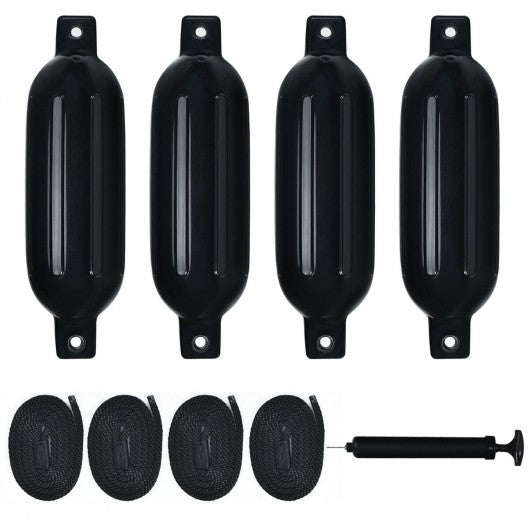 These 4 pack ribbed boat fender set is of high quality and could be an ideal choice for sailors and ship owners. Crafted of premium PVC material this item is anti-abrasive and UV-resistant. 3 mm thickness surface adds much strength and durability to the overall structure. Therefore it could serve you for a long time. Vertical ribs on all sides make it not prone to roll but could effectively reduce abrasions to protect boat. Two ropes holes on both ends allow you to hang on this item in vertical direction or horizontal direction. 4 ropes of 71 inch also bring much convenience for installation. More importantly this marine fender features an excellent performance of buffering which could effectively safeguard the boat or docks from damage caused by unexpected collision. It is worthwhile to have a try. If you are looking for a product such as this don't hesitate to buy it! Non-abrasive and UV-resistant PVC material ensures long lifespan Two reinforced eyelets make it possible to be hung vertically or horizontally 3 mm thick cover for maximum strength and durability Equipped with ropes and inflator bring much convenience Excellent buffering effect protects boat from damage PVC material makes it showcase a glossy appearance Vertical ribs could minimize rolling and protect this item against abrasions